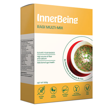 - InnerBeing's vegetarian and gluten-free Ragi flour is packed with protein & fiber to boost your digestive health. Start your day healthy with low GI Ragi Multi Mix